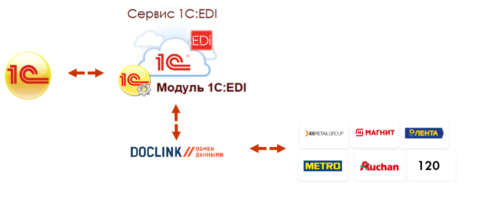 «Модуль 1C:EDI» – программный продукт от фирмы «1С», который позволяет обмениваться электронными документами с торговыми сетями из программ 1С. Обмен осуществляется через EDI-провайдера Сислинк и соответствует необходимым правилам электронного документооборота, в том числе с использованием технологии EDI (прием заказов в электронном виде, отправка уведомления об отгрузках и т. п.
