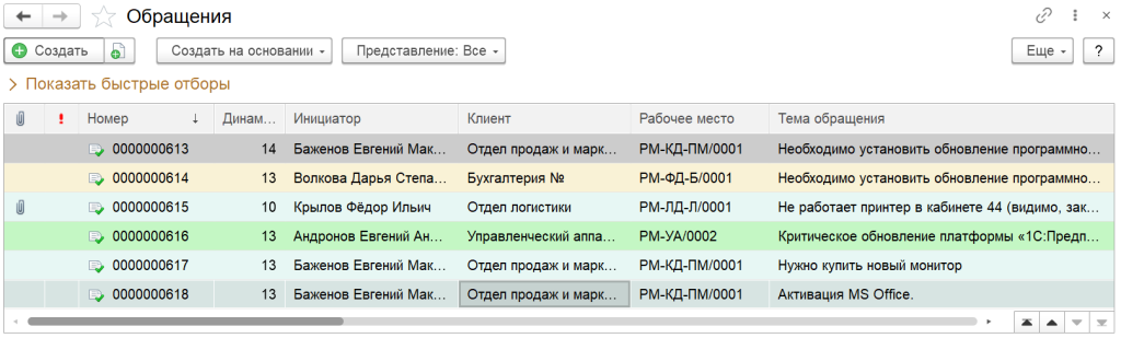 Автоматическое определение крайнего срока обработки обращения в соответствии с параметрами SLA позволяет определить временные и процентные пороги для автоматического информирования и эскалации, что позволяет осуществлять эффективный оперативный контроль хода обработки обращений в режиме реального времени. Кроме того, решать задачу оперативного мониторинга и контроля обработки помогает функциональность интерфейсов: система цветовой маркировки, настраиваемая в зависимости от крайнего срока и состояния обработки, автоматически обновляемая оперативная отчетность, всплывающие информационные сообщения, настраиваемая видимость, доступность и обязательность заполнения полей форм.