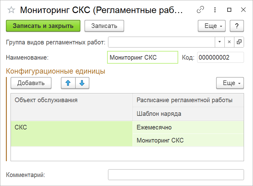 Предусмотрено формирование шаблонов нарядов, которые могут включать исполнителей, конфигурационные единицы и другие предопределенные значения реквизитов документа. Для автоматизации выполнения работ в системе используются регламентные наряды, которые создаются как плановое событие в рамках регулярного обслуживания по заранее определенным расписаниям и шаблонам нарядов.