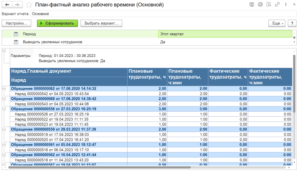 Оперативная и аналитическая отчетность по нарядам позволяет определять степень загруженности персонала работами и при необходимости менять ответственных за конкретные наряды.