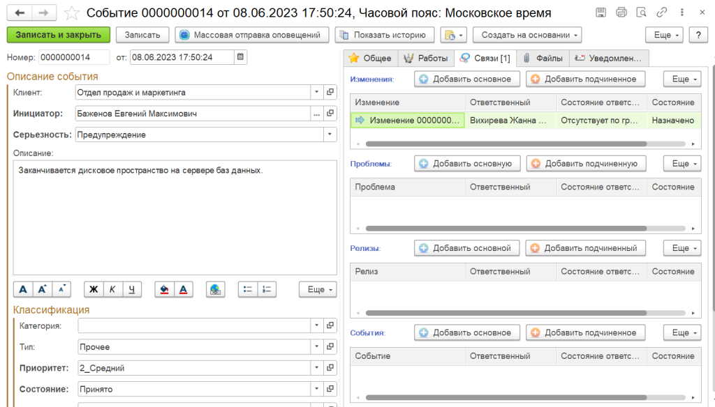 - категоризация и приоритизация изменений, настройка жизненного цикла изменений и автоматическое информирование всех участников процесса;