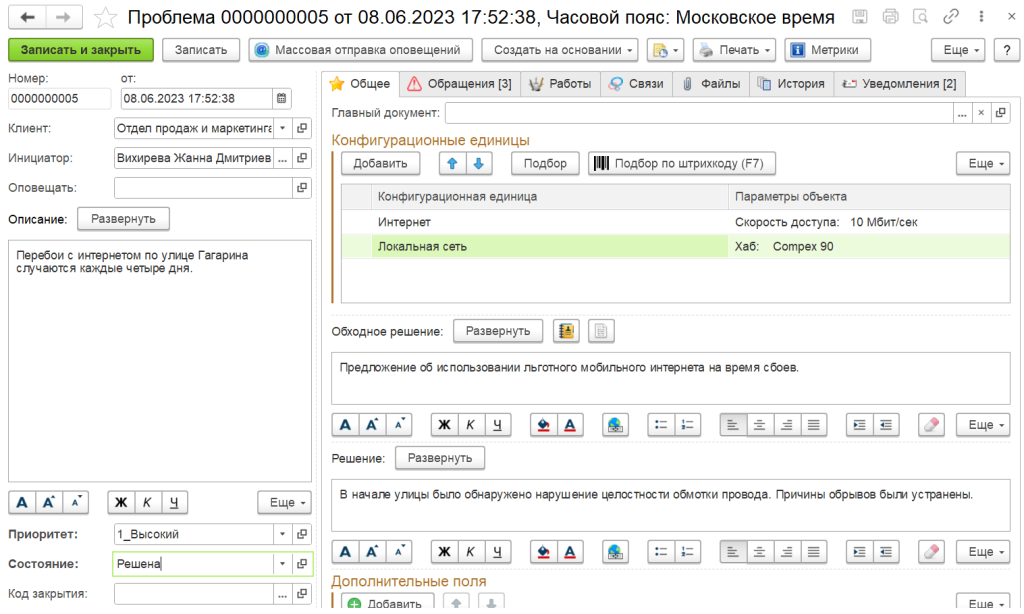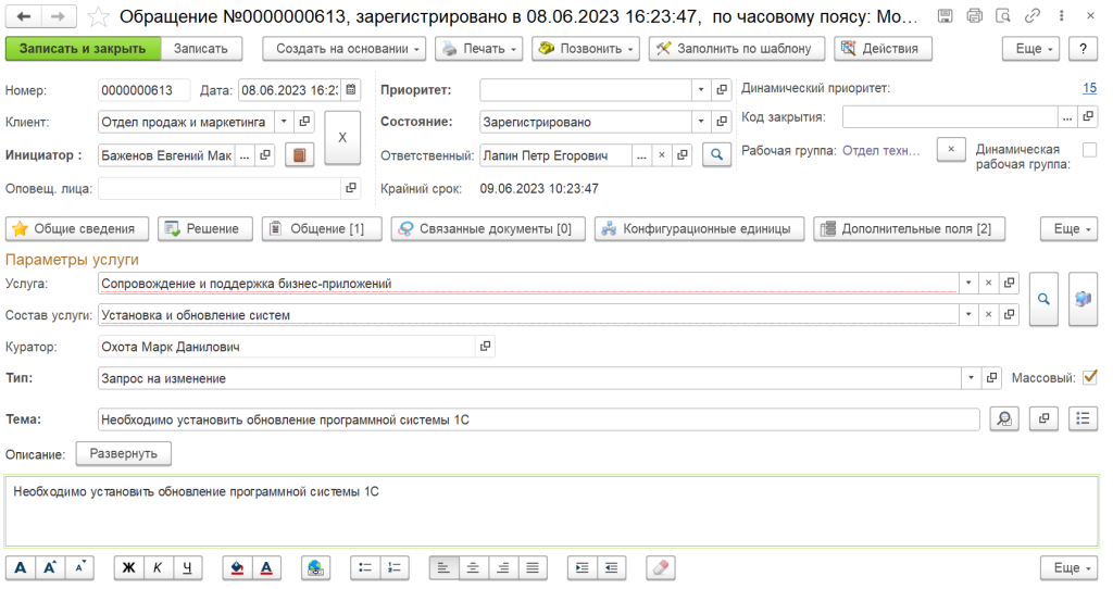 Каждое обращение классифицируется в соответствии с предоставляемыми пользователю на основе SLA услугами, что позволяет выполнить его правильную маршрутизацию на рабочую группу или назначить ответственного за его обработку.