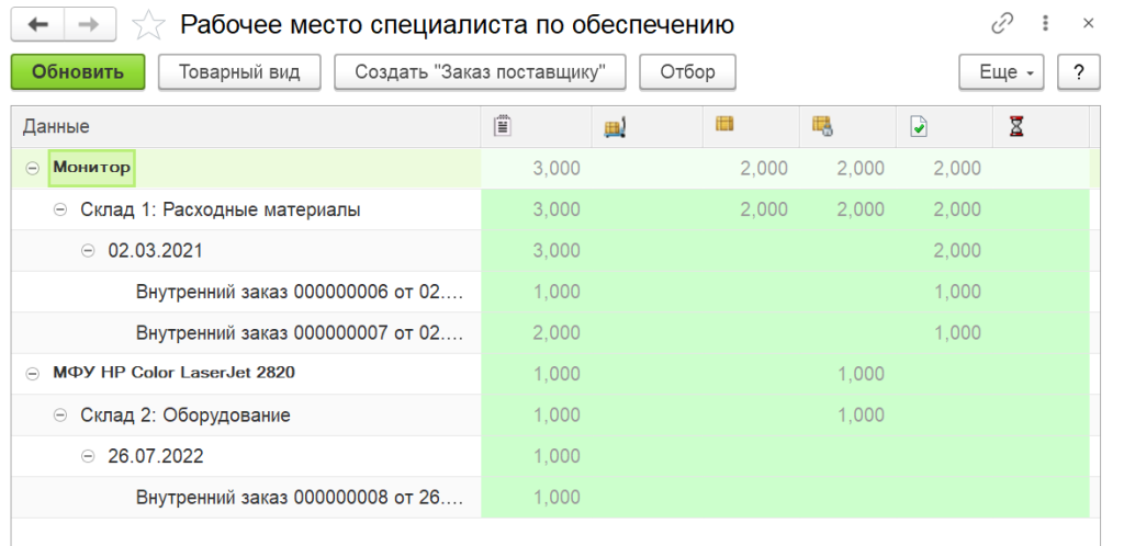 Инструментарий позволяет также автоматизировать операционное управление деятельностью компании, которая не связана с обращениями пользователей и не носит периодический или регламентный характер. Например, при уменьшении неснижаемого остатка картриджей для принтеров ниже определенного порога в «1C:ITILIUM» будет создан документ «Событие», и операторы смогут оперативно отреагировать и оформить заказ поставщику.