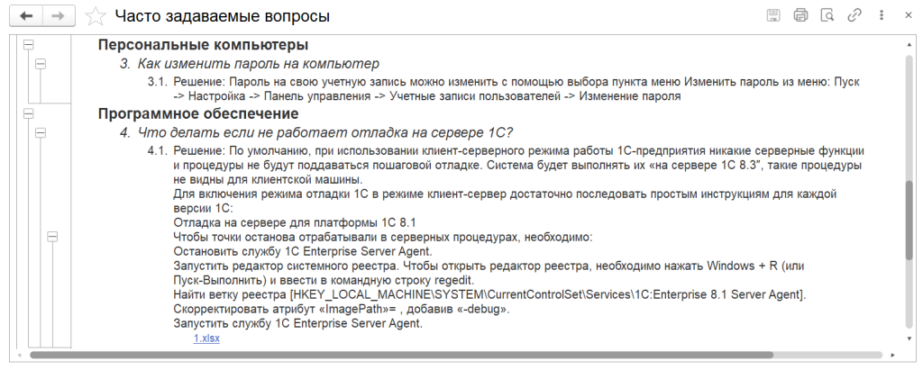 - ведения информационной базы с известными ошибками и обходными решениями;