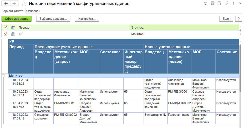Оперативный учет КЕ также может включать движение материалов и запасных частей на складах, учет оборудования в эксплуатации и списание материалов по нарядам.