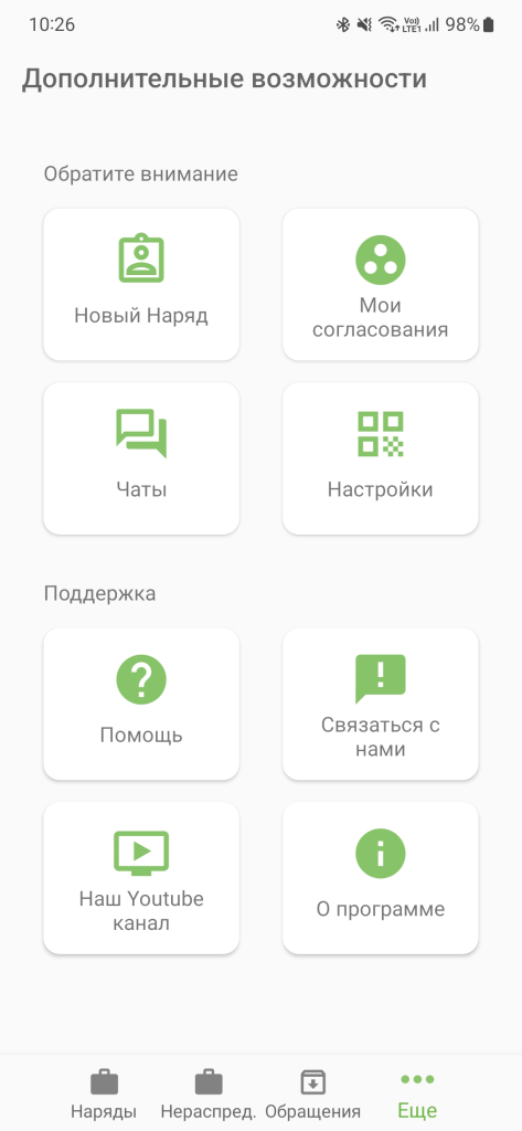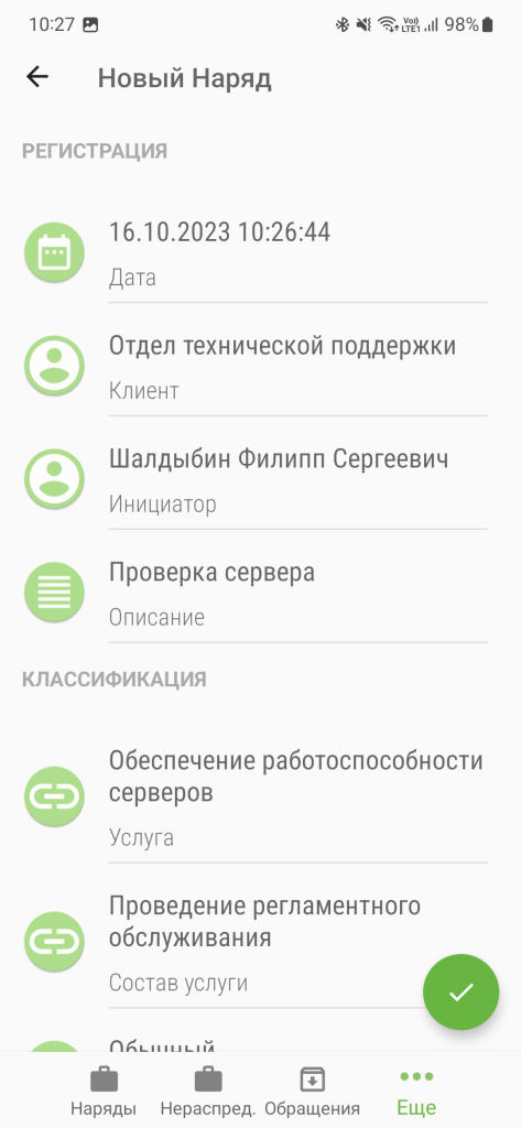 По завершении работ по текущему наряду инженер может самостоятельно выбрать новую задачу из нераспределенных заявок своей рабочей группы. Реализована возможность согласования обращений, есть чат для обсуждения вопросов по обращению или уточнения деталей у инициатора обращения. Доступны прикрепление медиафайлов (фото, видео, аудио) к документам и их передача в «1С:ITILIUM».