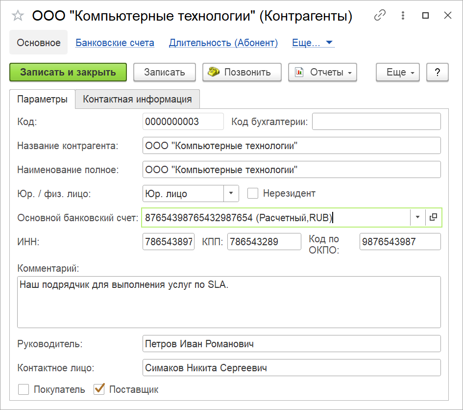 Управление взаимоотношениями с клиентами необходимо как для оказания услуг внешним клиентам, так и для управления сервисами внутри компании. В рамках этого процесса «1C:ITILIUM» позволяет вести иерархический список клиентов, детализированный в разрезе юридических лиц и подразделений.