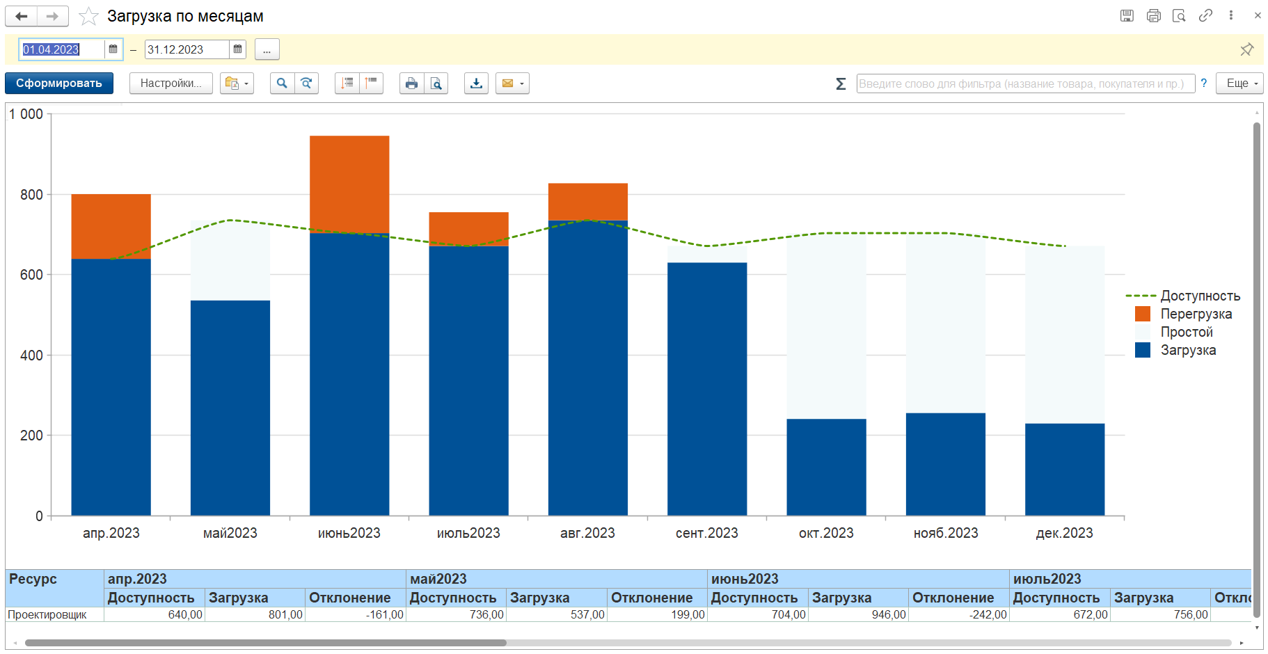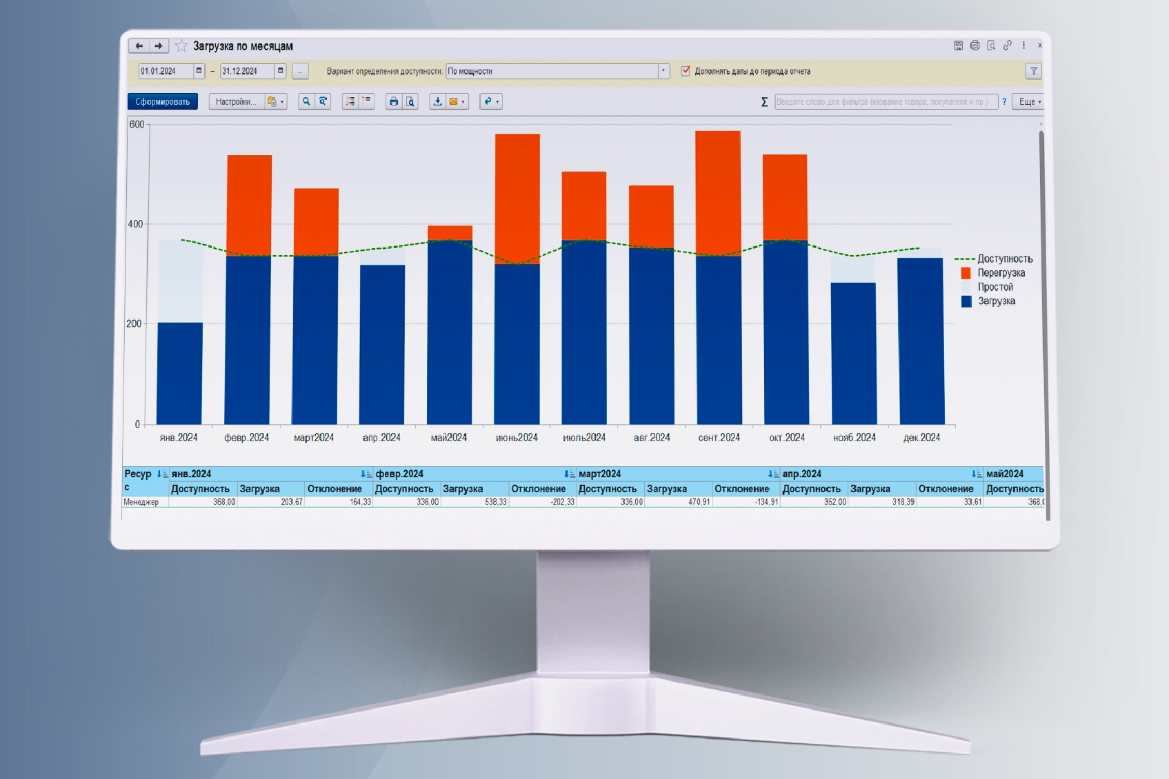 • Анализ простоев/перезагрузки, трудозатрат по уровням планирования;