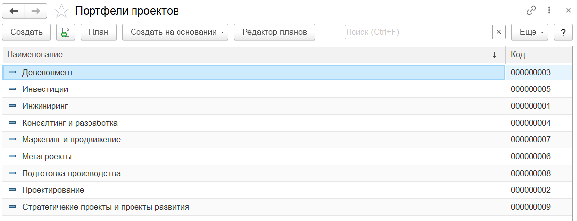Наименование «1С:Предприятие 8. PM Управление проектами ПРОФ»