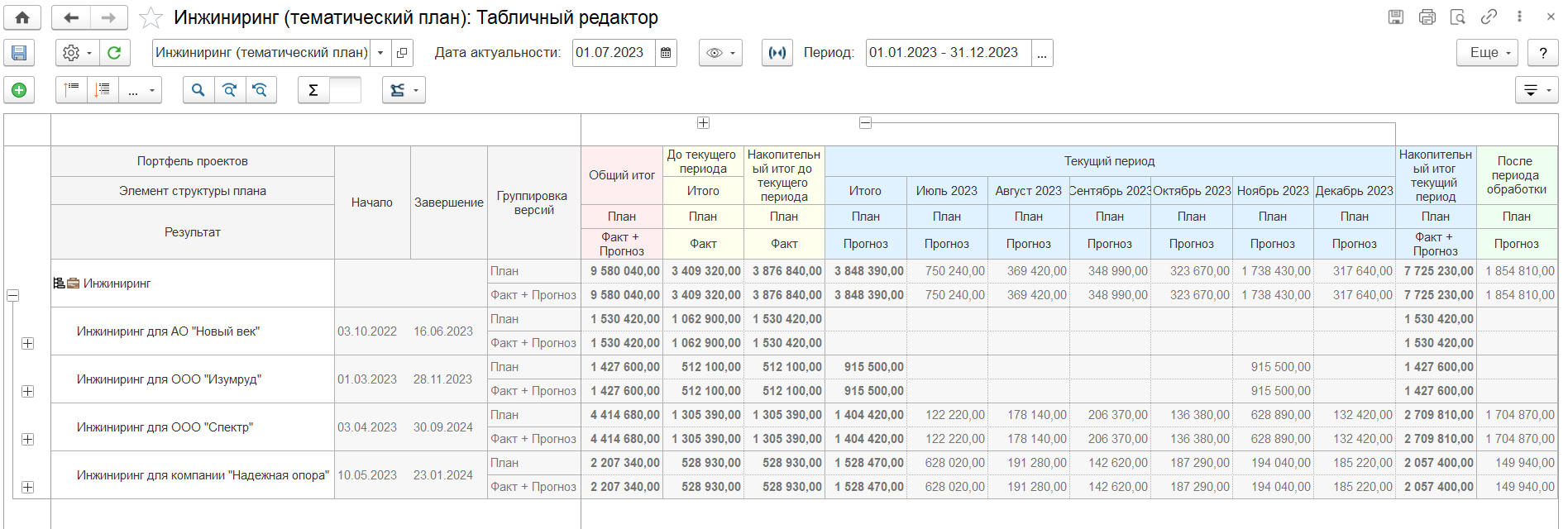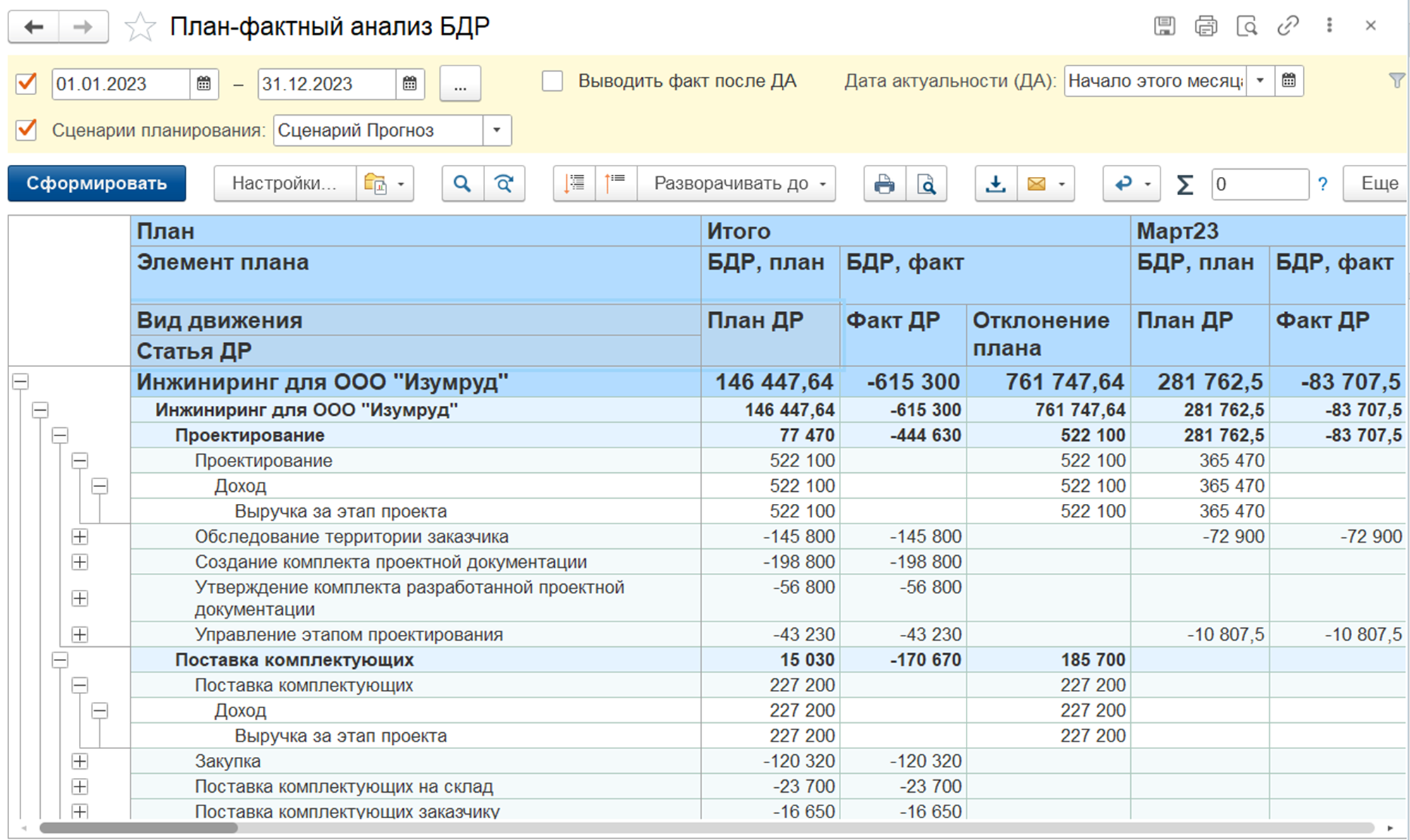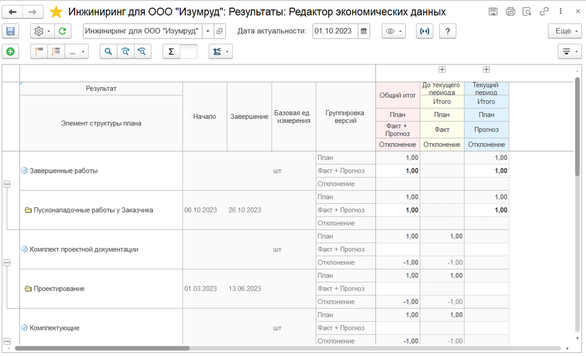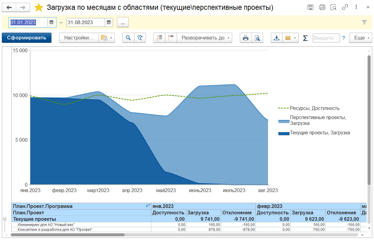 • Витрина данных для «1С:Аналитика»: регистр для консолидации проектных данных с целью вывода на витрину «1С:Аналитика».