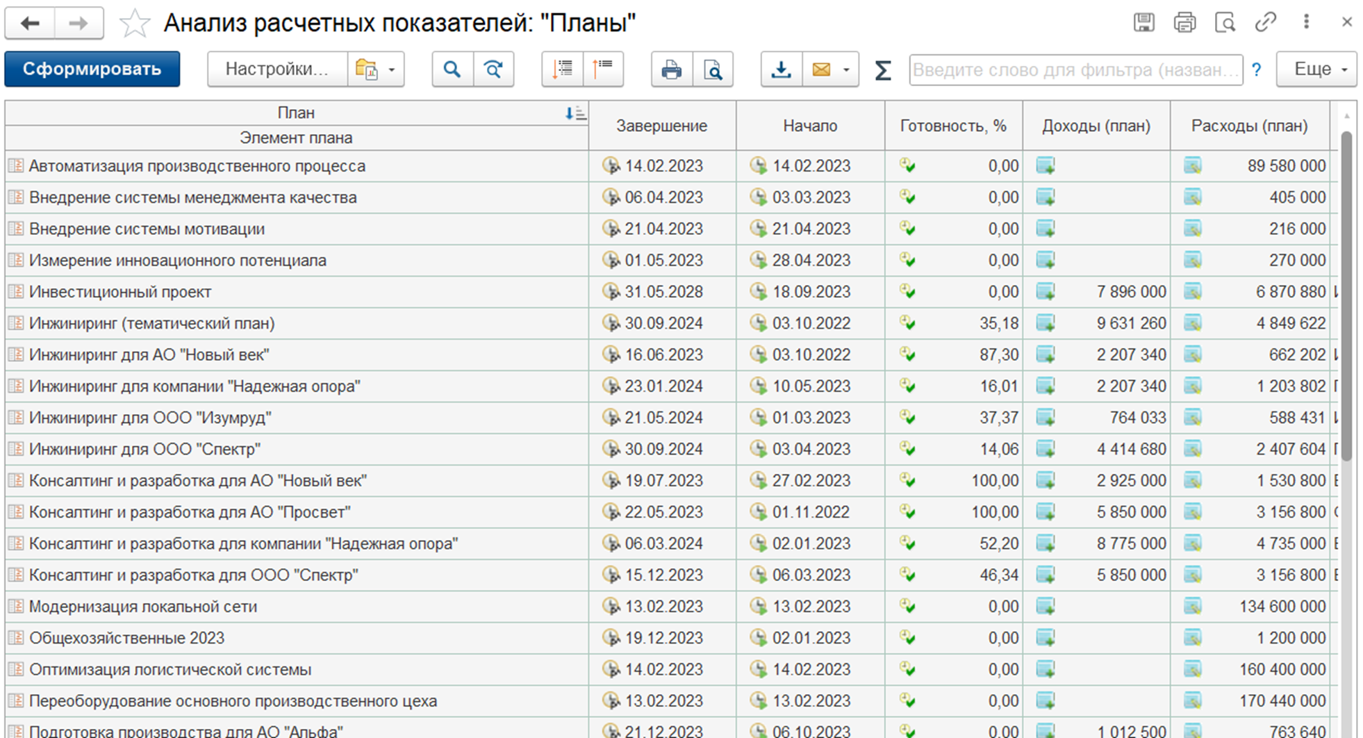• Планы проектов, этапов, работ, сроков;
