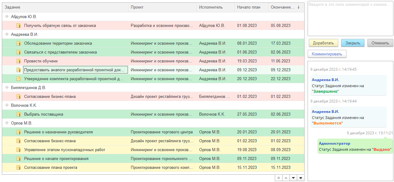 Диспетчирование проектных работ