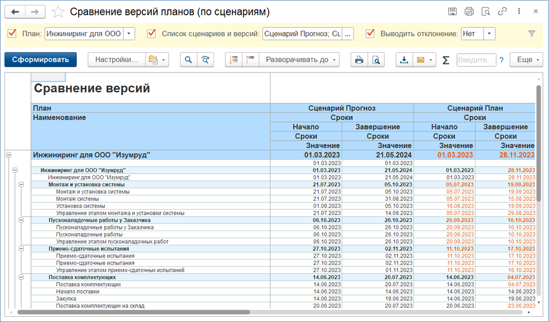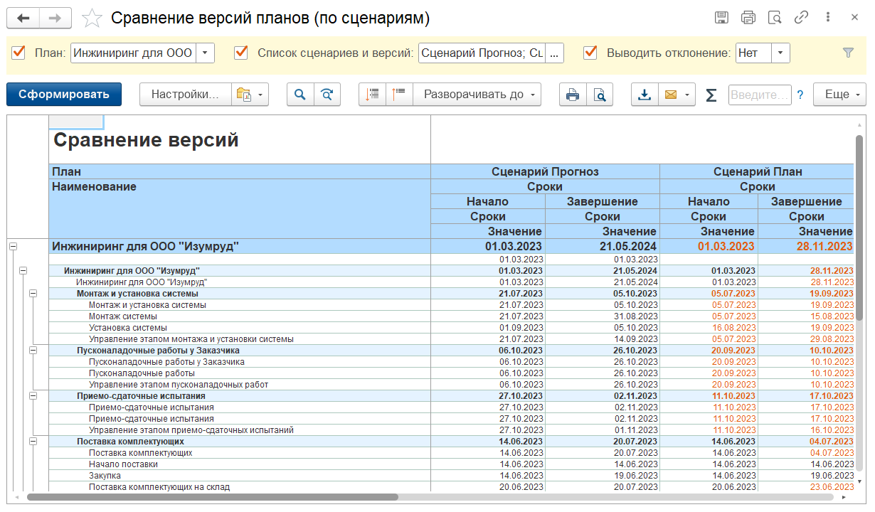• Сравнение версий