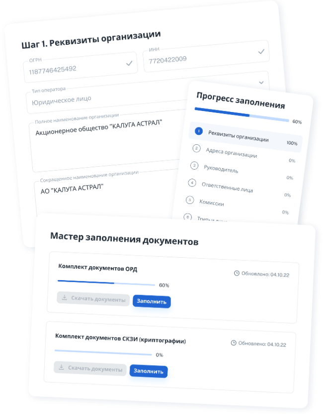 Генерация документовАвтоматизирует процесс создания ОРД и документов по эксплуатации СКЗИ в едином пространстве |