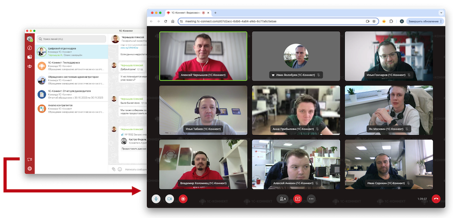 Видеозвонок создается «в два клика» из приложения 1С-Коннект. Вы можете запустить его сразу или запланировать на удобное время. Ссылку на вход можно переслать например в чате 1С-Коннект или любым другим способом. |