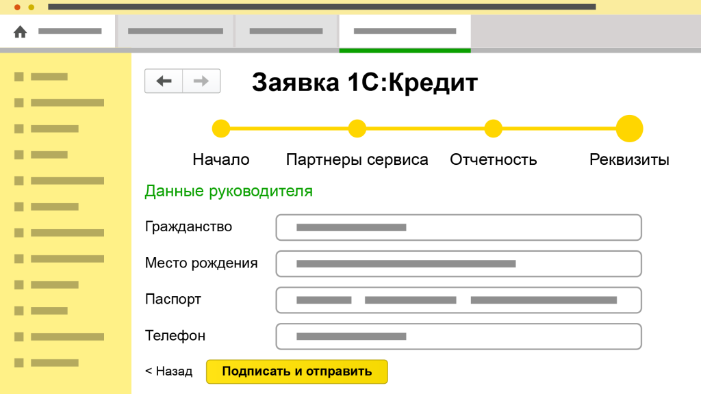Отправить заявку на кредит из программы 1С можно за 4 простых шага: