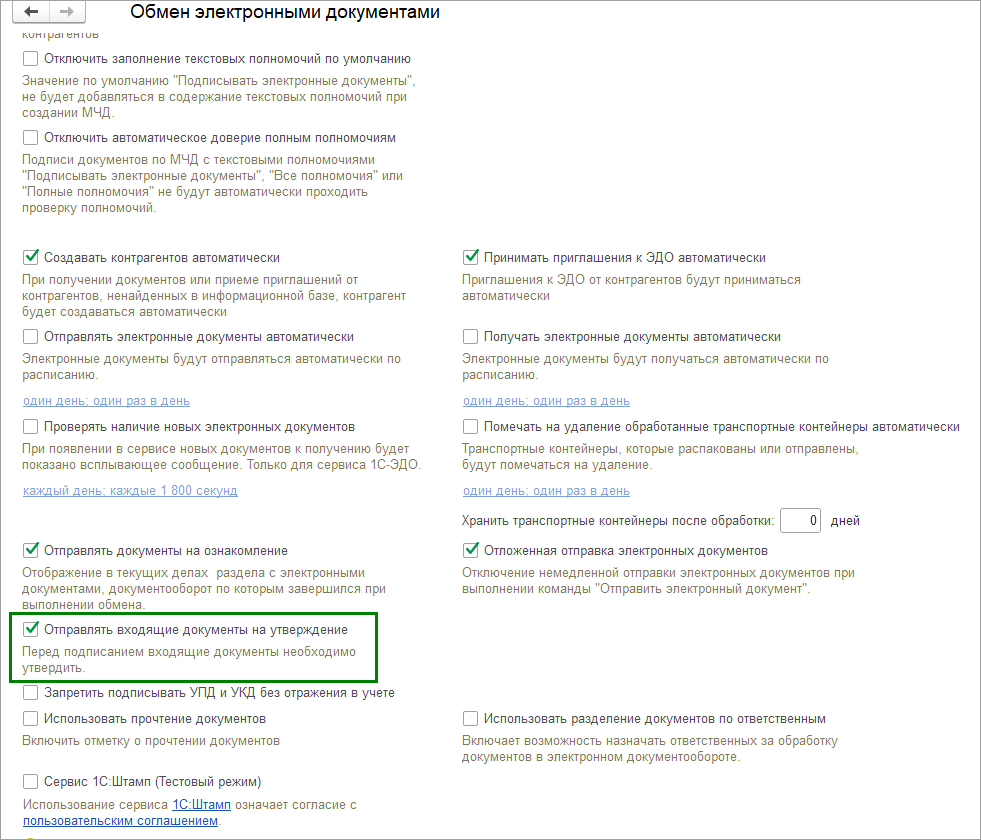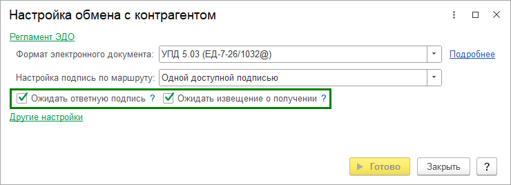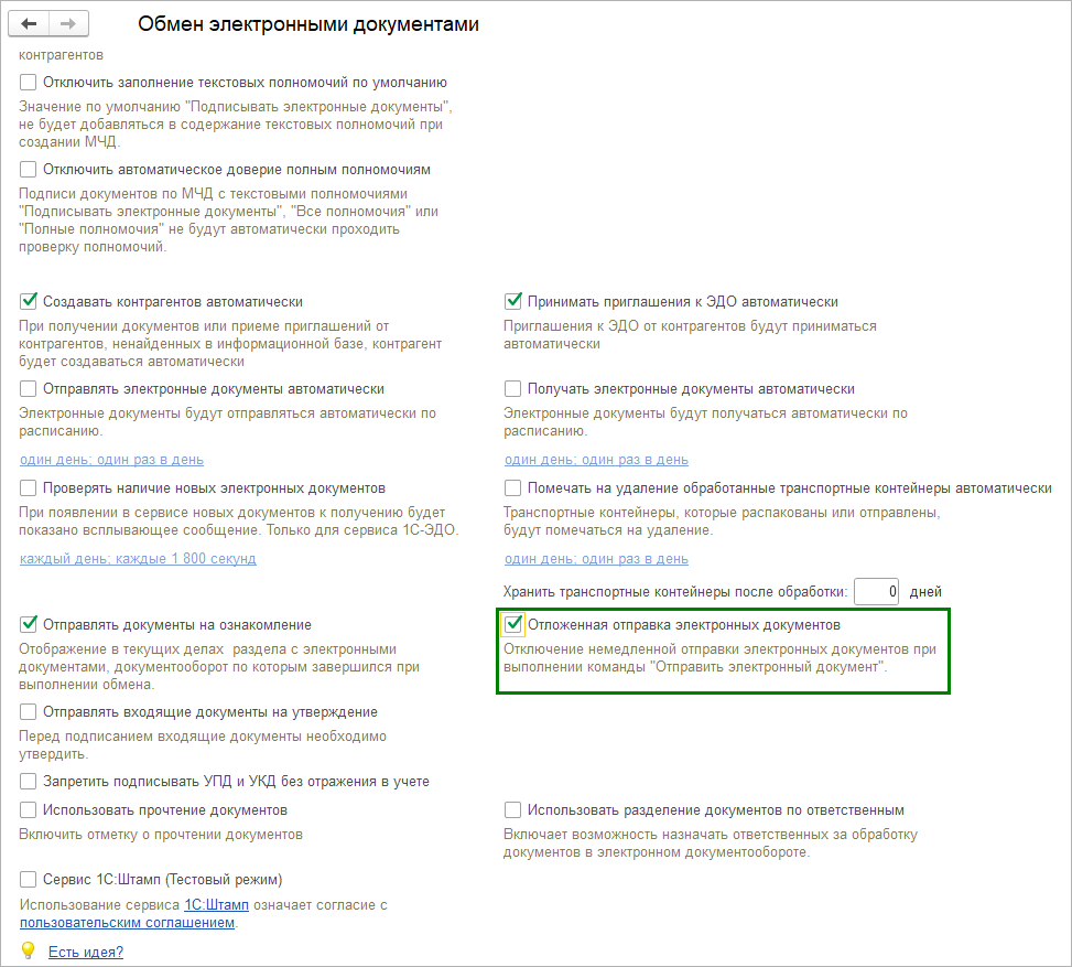 После этого соответствующая настройка появится в Настройках ЭДО.