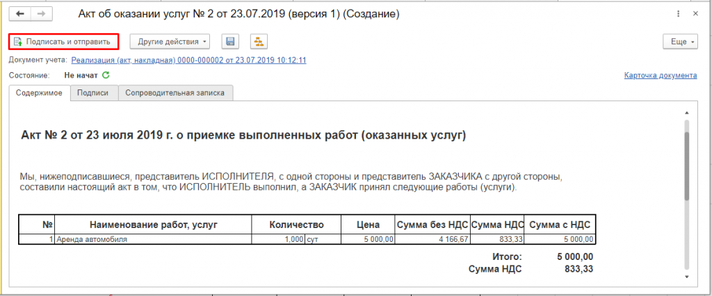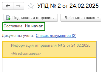 Не начат – данное состояние означает, что связь с контрагентом есть, но электронный документ ещё не сформирован. Пользователю доступно формирование, подписание и последующая отправка документа в сторону контрагента.