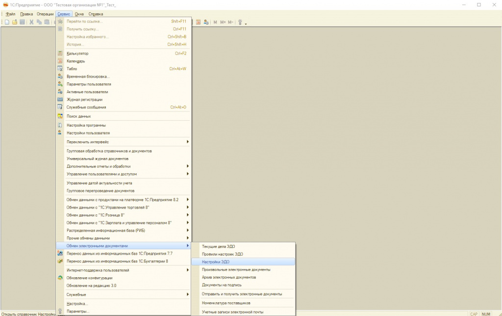 В версиях программных продуктов, использующих Библиотеку электронных документов 1.1, для изменения способа обработки входящего электронного документа необходимо перейти в раздел Сервис – Обмен электронными документами – Настройки ЭДО.