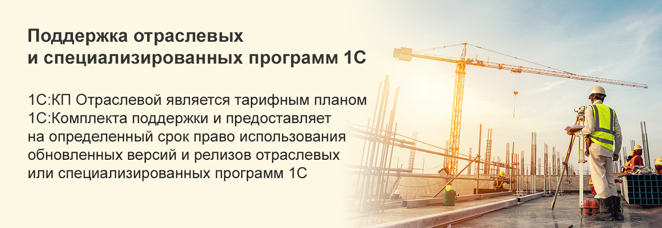 1С:КП ОтраслевойЭто дополнительный тарифный план 1С:Комплекта поддержки (далее — 1С:КП, внесен в Единый реестр российских программ, запись №7884 от 28.12.2020), который предоставляет лицензиату на определенный срок право использования набора программ для ЭВМ и баз данных, повышающих продуктивность работы с отраслевыми или специализированными программами 1С, выпускаемыми под маркой «1С-Совместно» (далее – отраслевые ПП), приобретенными и зарегистрированными лицензиатом ранее, в том числе право использования собственно обновленных версий и релизов, право использования предоставляется только при наличии у лицензиата оформленных на тот же период основных тарифов 1С:КП – «1С:КП ПРОФ», или «1С:КП Базовый». В тарифном плане 1С:КП Отраслевой существует 2 уровня поддержки – «ПРОФ» и «Базовый». |