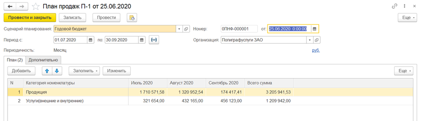 - Построение оптимизированного плана производства и отражение факта