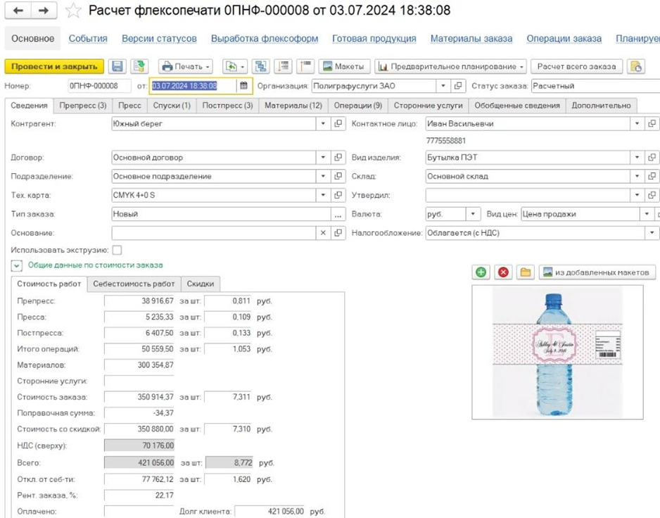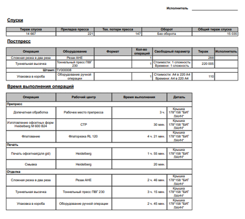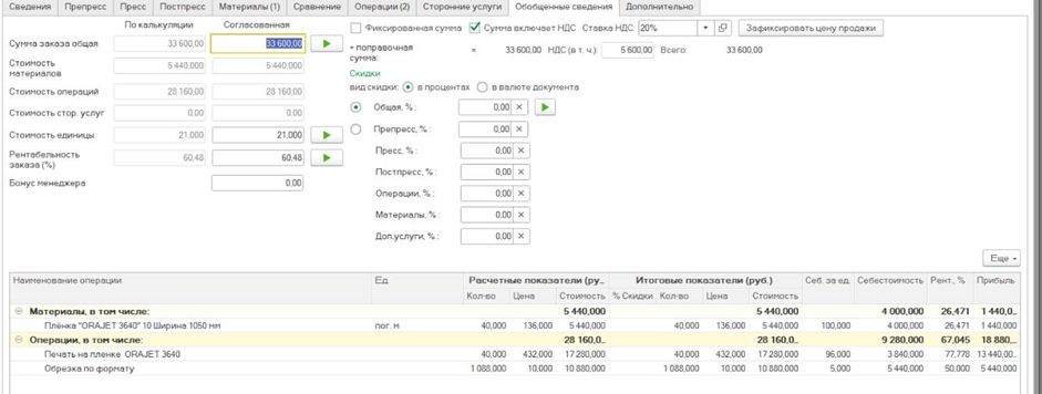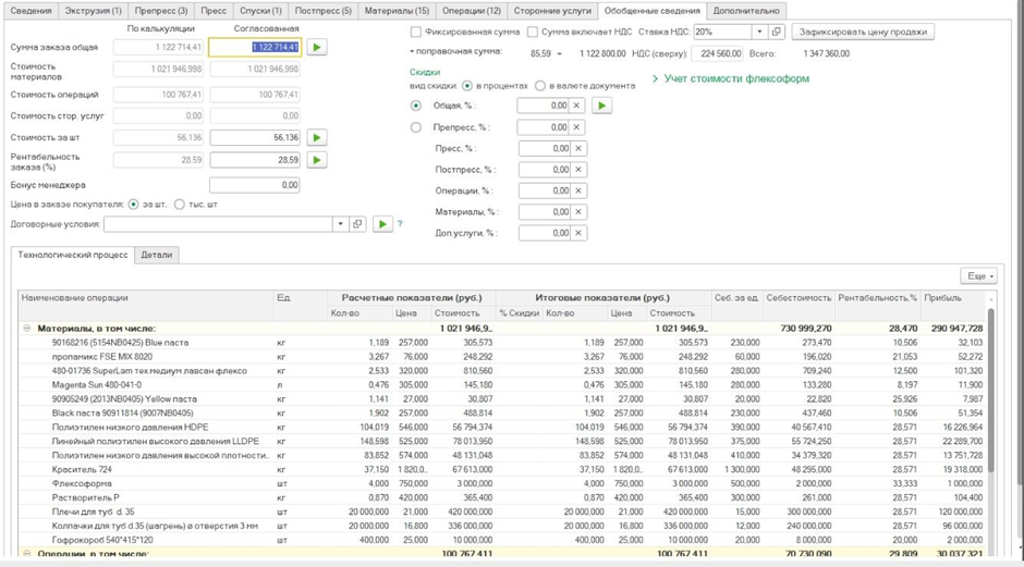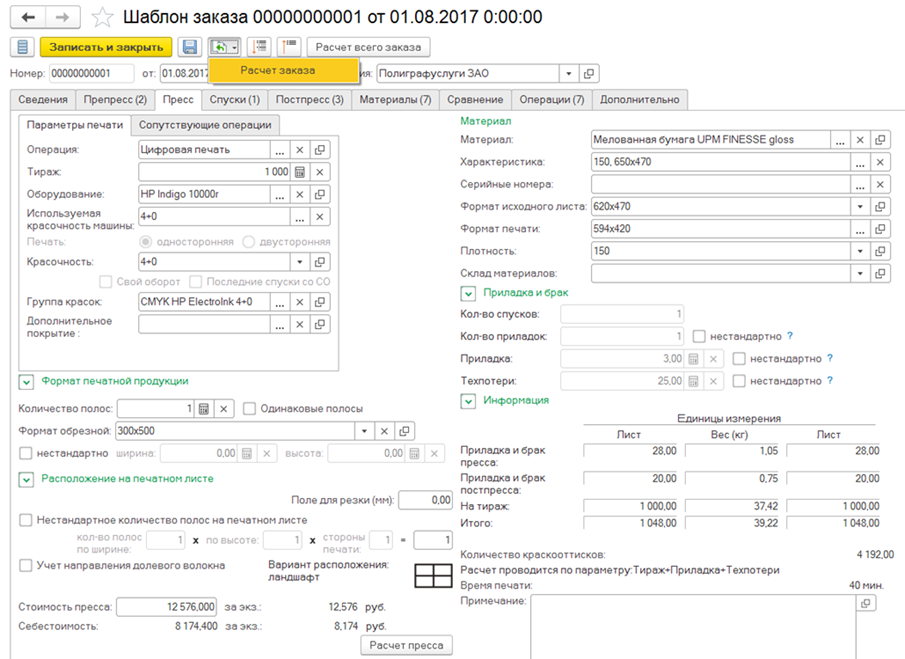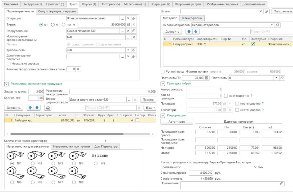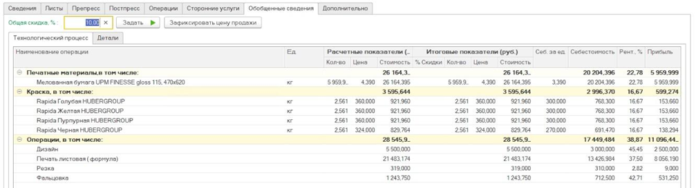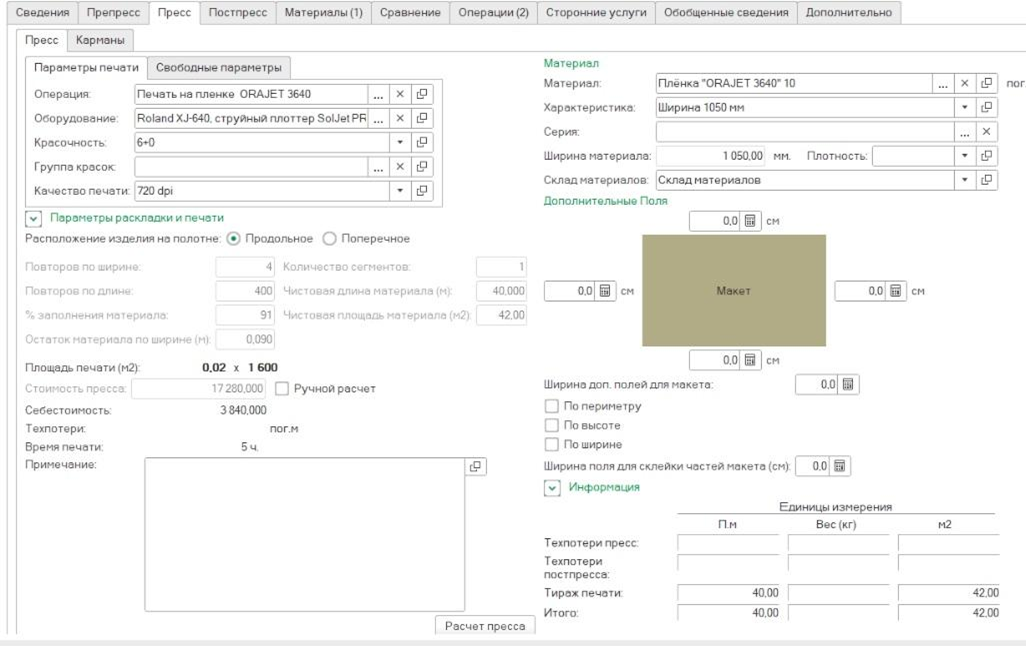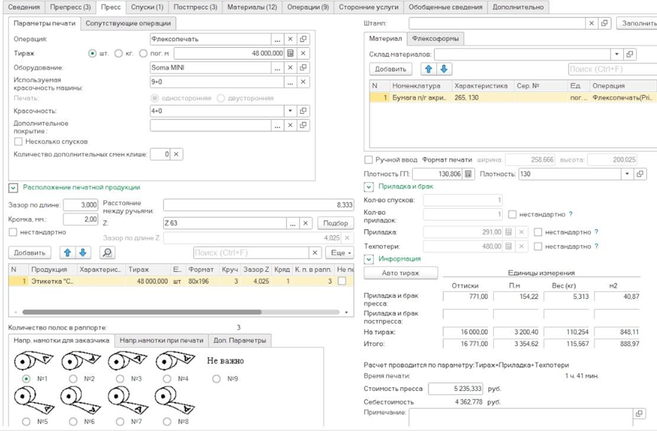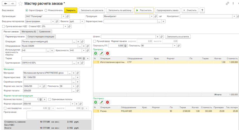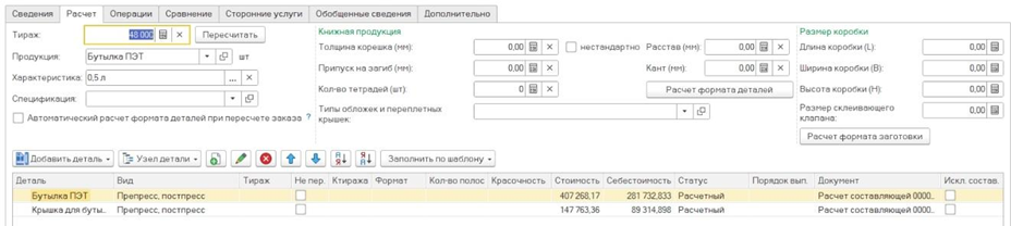 - Возможен расчет операций препресса и постпресса, а также сопутствующих операций.