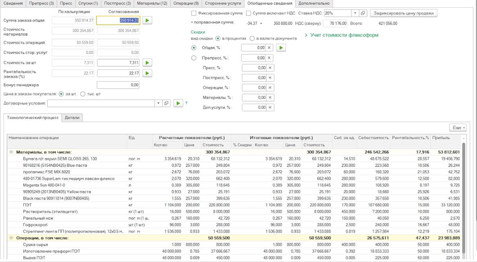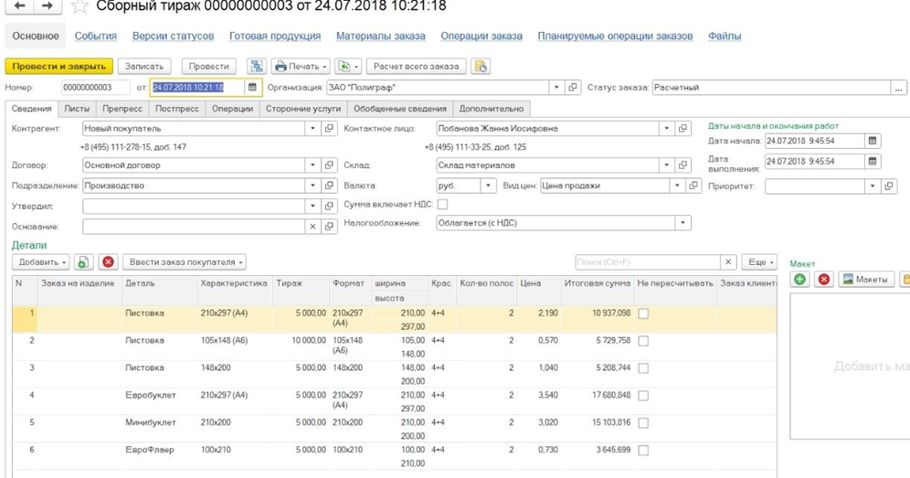 «1С:Полиграфия» обеспечивает решение всех основных задач, которые требуются типографии: