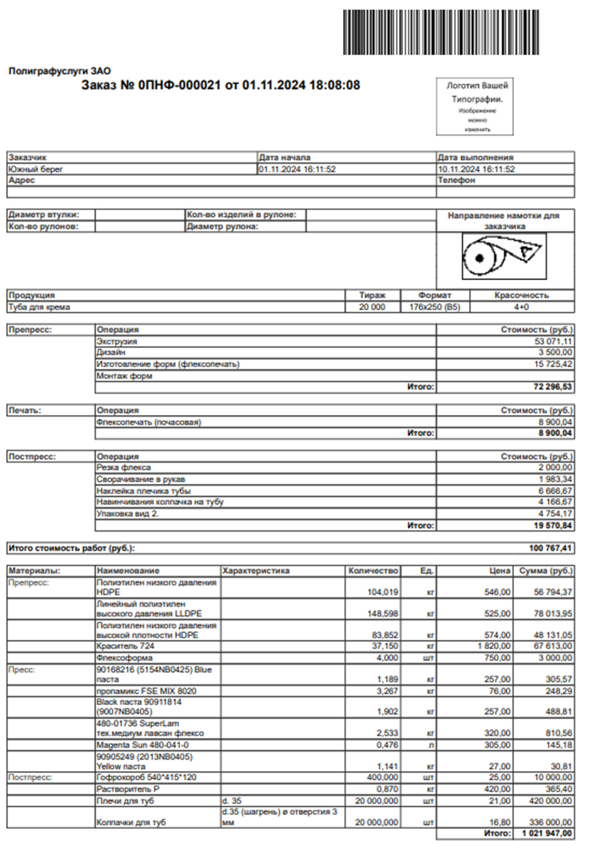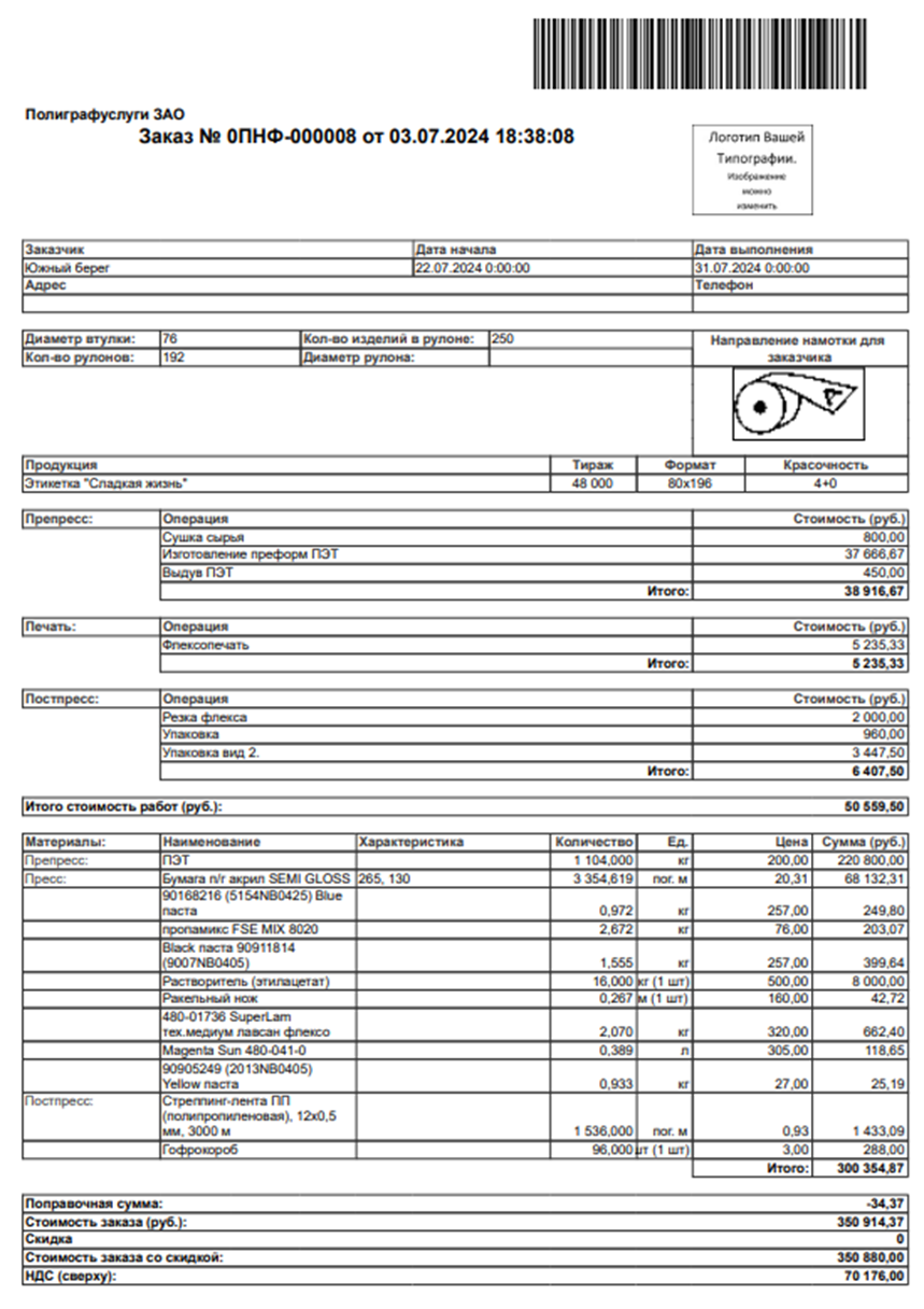- Разработан функционал калькуляции следующих видов печати:
