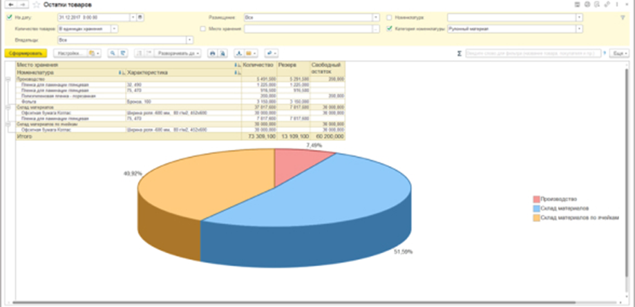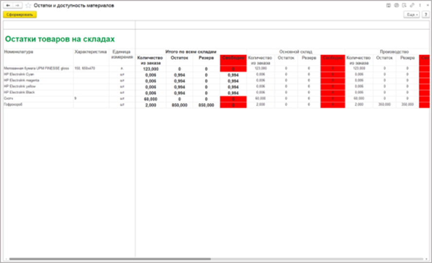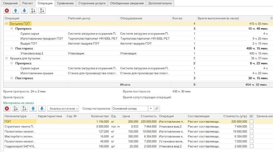 - Также в программе реализовано планирование расхода материалов и резервирование.