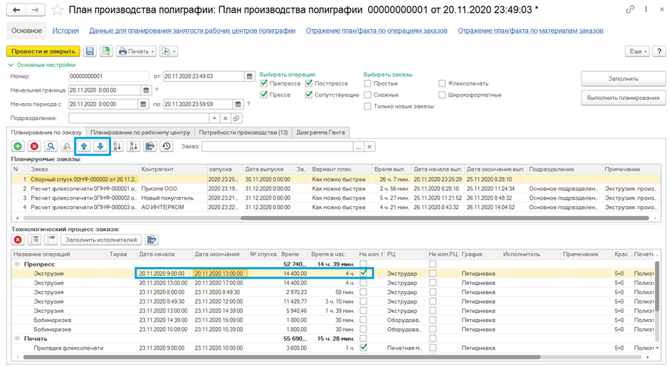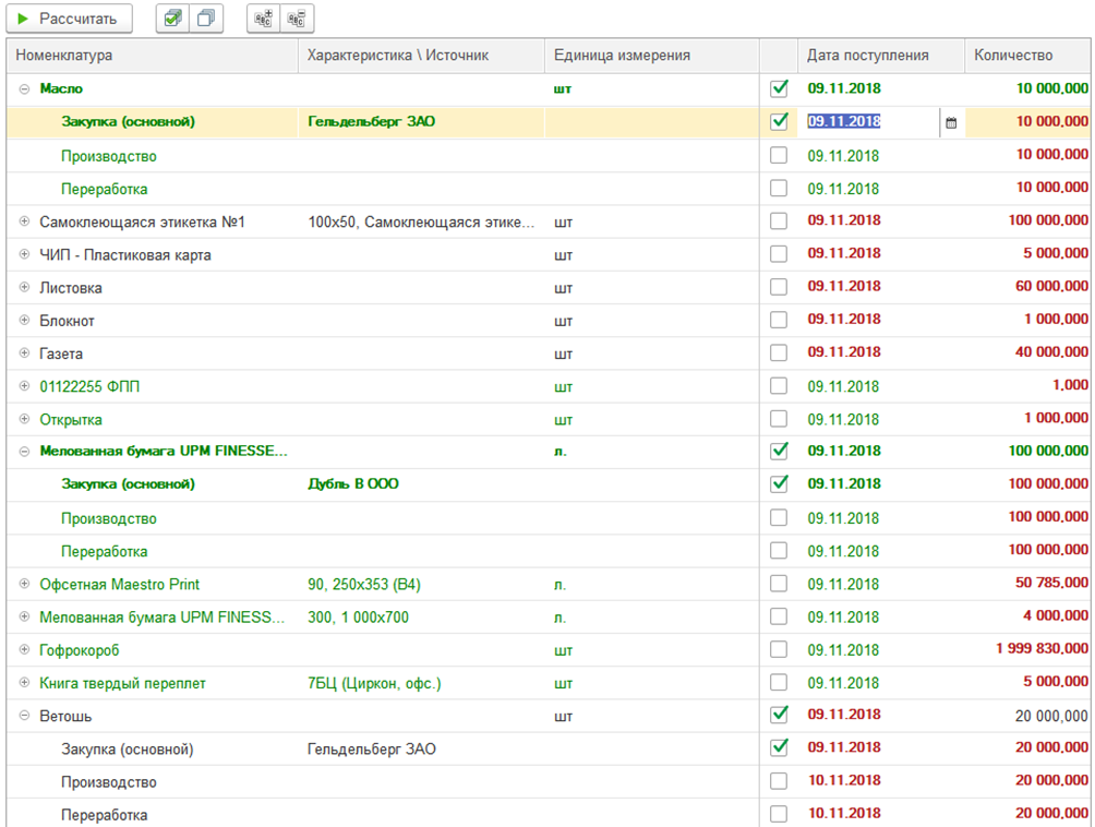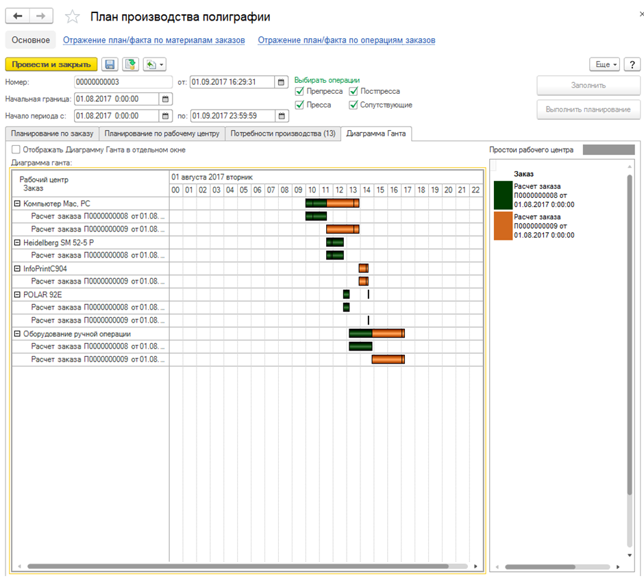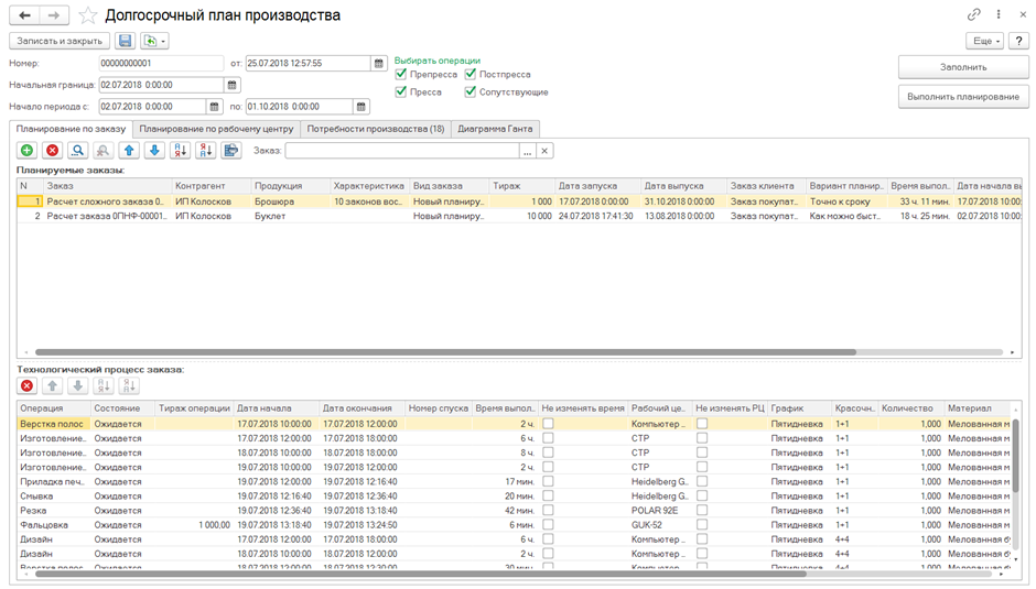 - В программе есть 2 схемы оперативного планирования производства: