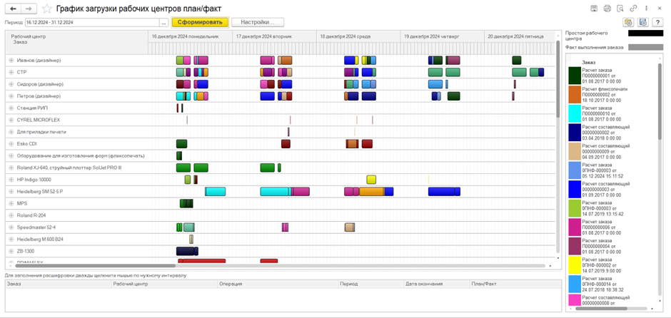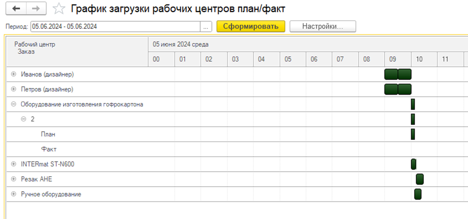 - Резервировать время под заказ, формировать сменно-суточные задания и долгосрочный план производства.