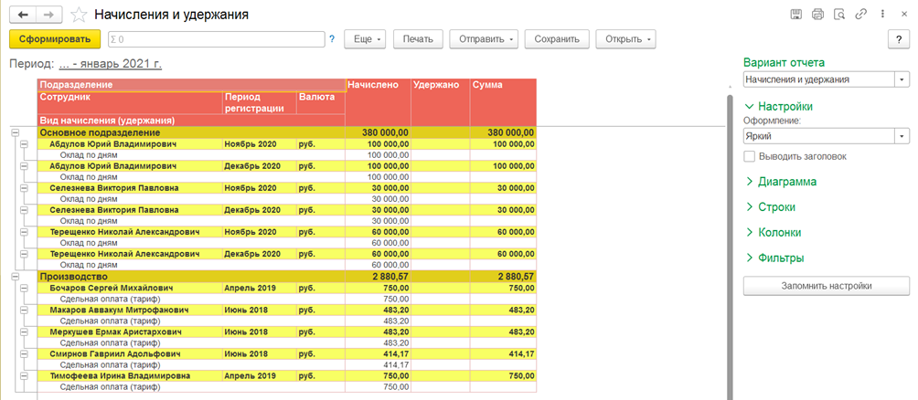 - Функционал расчета сдельной заработной платы.