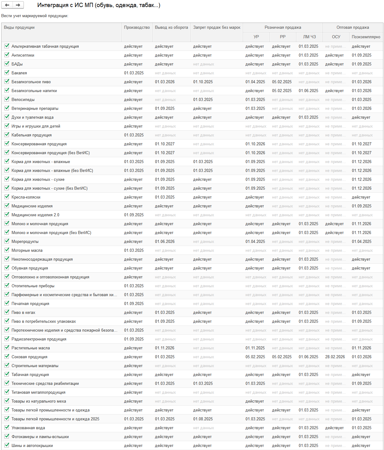 с 2025 года — моторные масла, бакалея, парфюмерно-косметическая продукция и товары бытовой химии (с 1 марта).