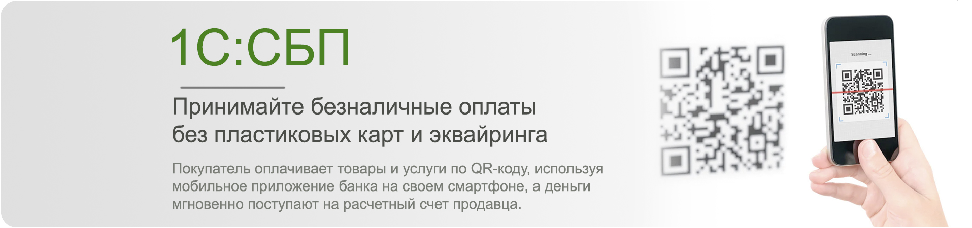 В программах 1С также поддерживается возможность оплаты по кассовому QR-коду