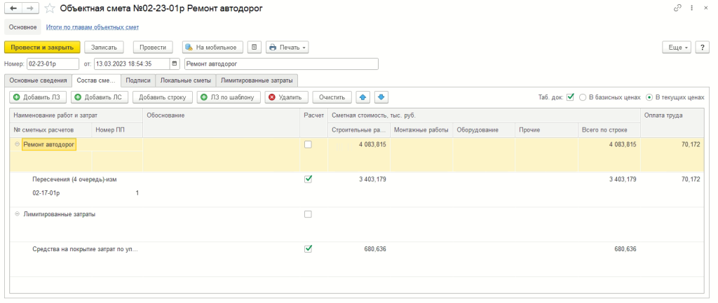 Для конфигурации «Смета 3. Базовая версия» существует ряд ограничений: