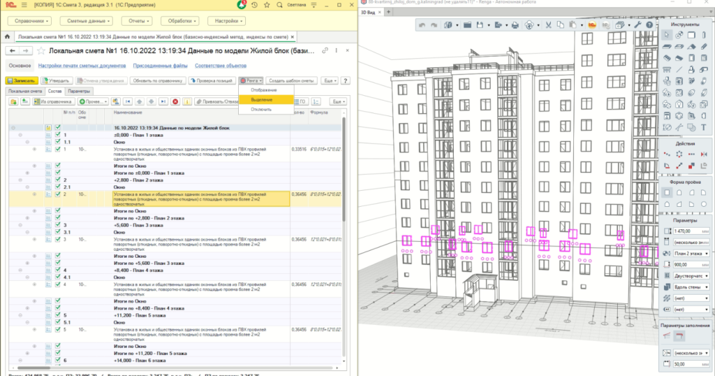 Основная электронная поставка «1С:RengaBIM и Смета. Комплект решений для 3D-проектирования и подготовки сметной документации» (артикул 2900001919357) включает в себя:
