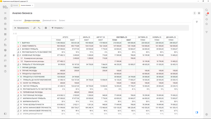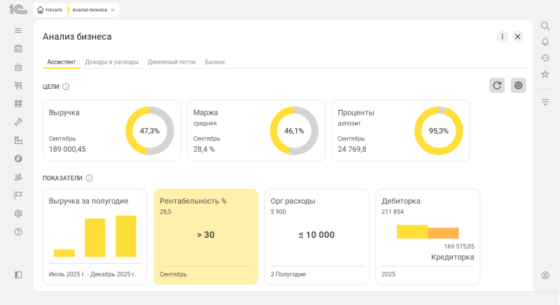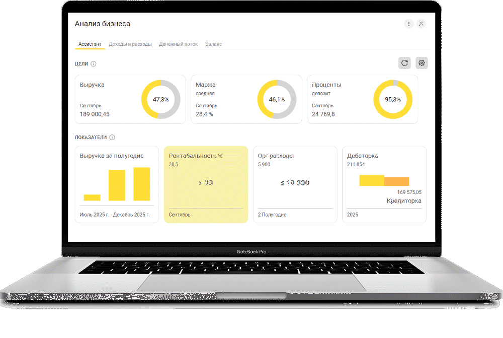 ✓ Ставьте цели с финансовым ассистентом, которых запланировали достичь: прибыль, маржа, денежный поток.