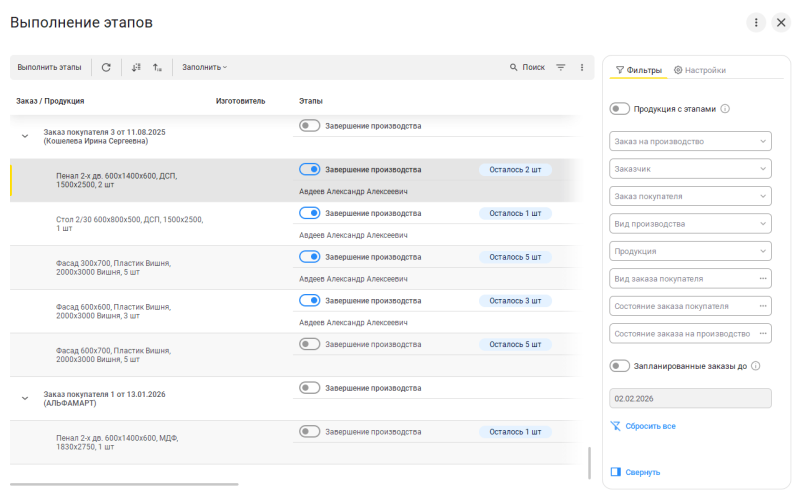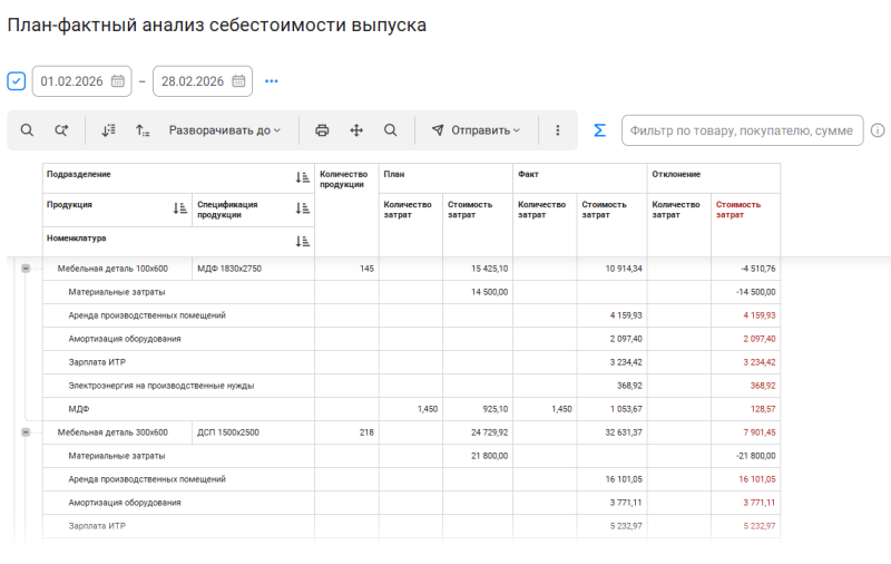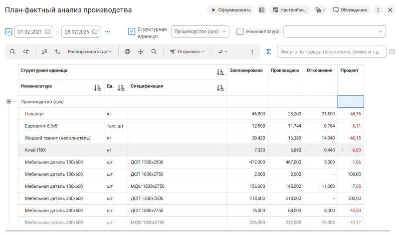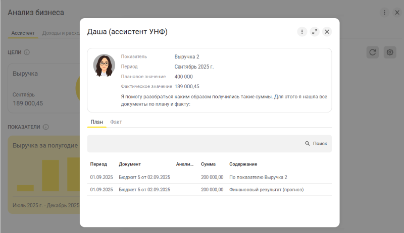 ✓ Анализируйте причины выполнения запланированных значений, открывая карточки целей.