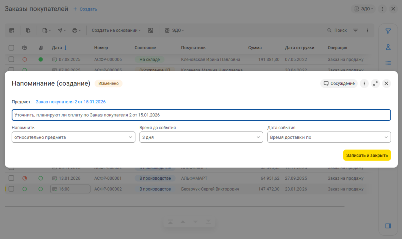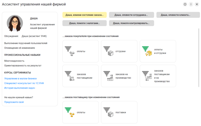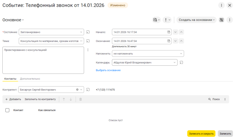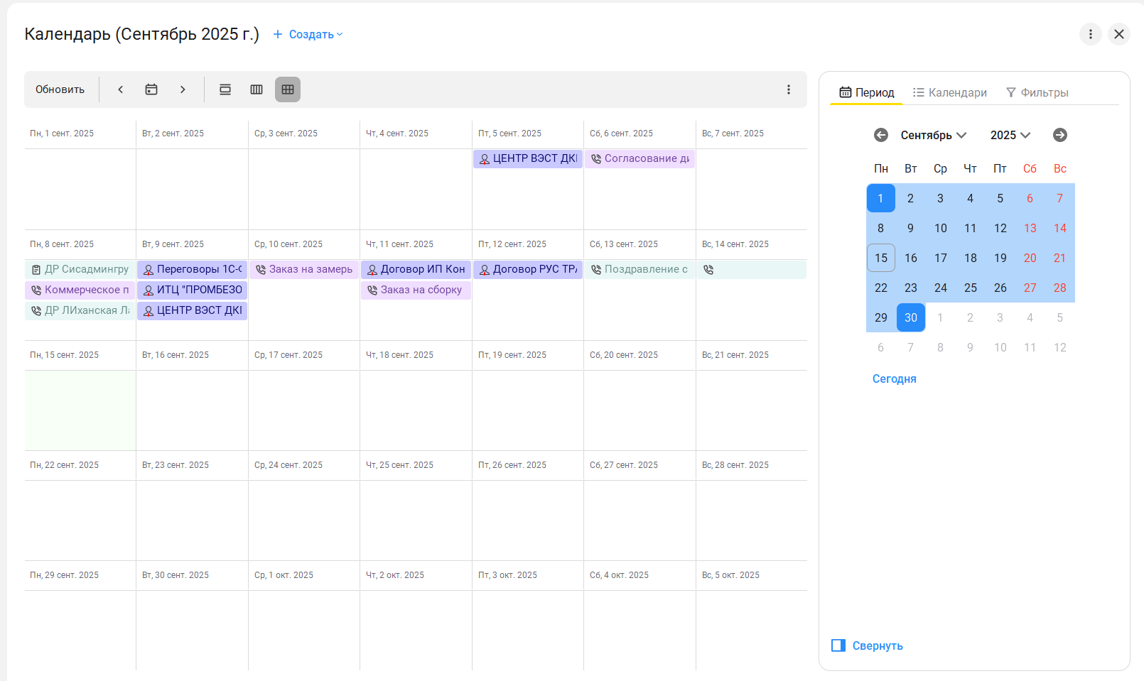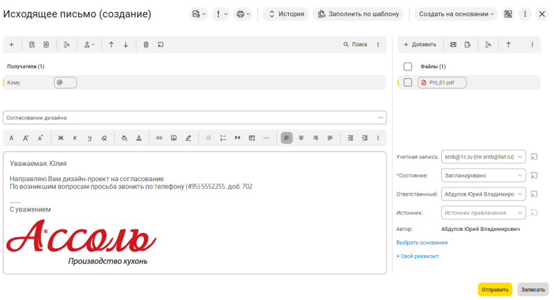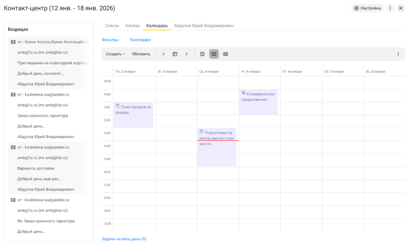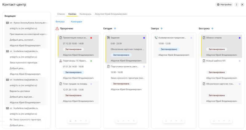 1С:УНФ имеет встроенную CRM-систему, в которой можно: