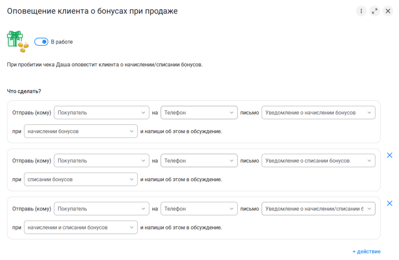Бонусные программы. В 1С:УНФ можно автоматизировать учет бонусных баллов: начислять бонусные баллы при покупке, в день рождения и вручную при проведении акции; списывать при оплате бонусами или «сгорании» по окончании акции.