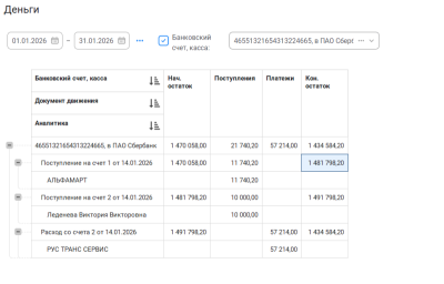 Программа позволяет начать учет с денежных средств по расчетным счетам и кассам, используя различные валюты. Денежный поток покажет, насколько жизнеспособен ваш бизнес.