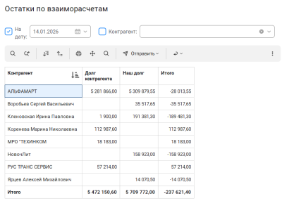 Сверять взаиморасчеты с контрагентами можно в режиме реального времени, не связываясь с поставщиками и покупателями.