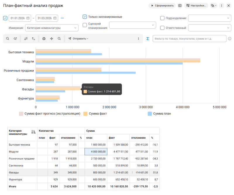 Планируйте движение денег и контролируйте в режиме онлайн в отчете план-факт.
