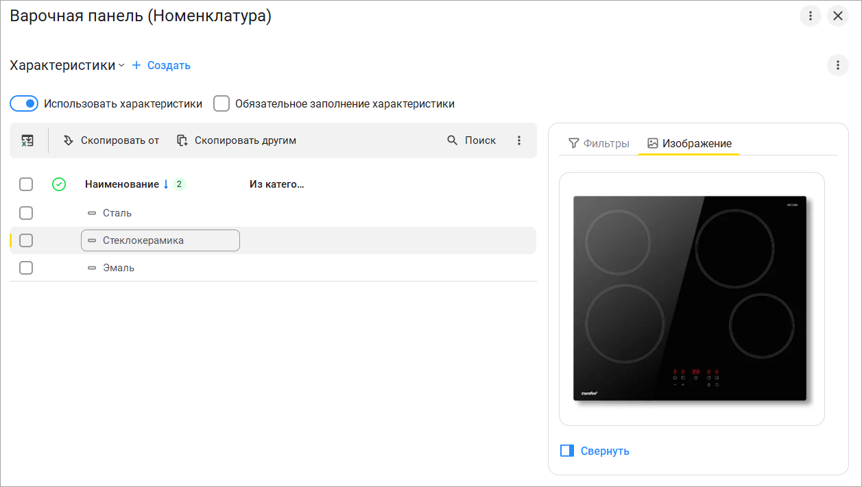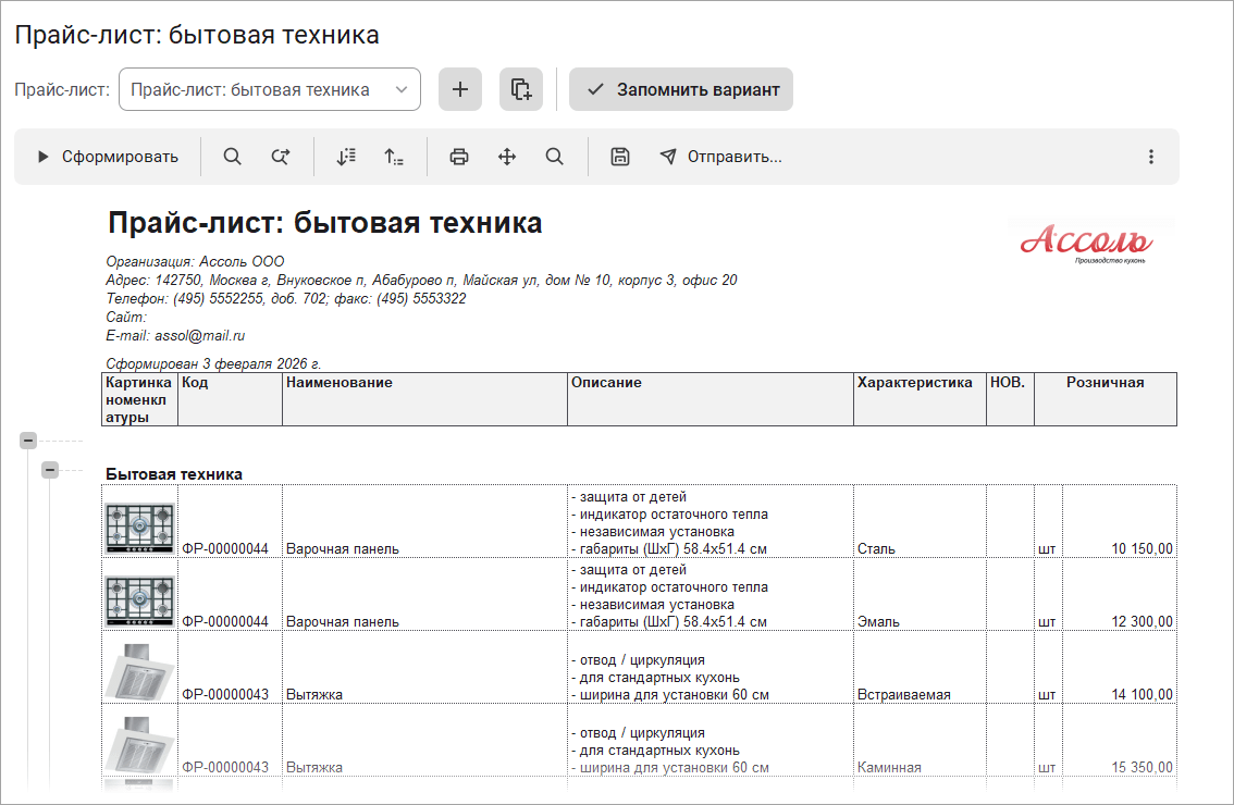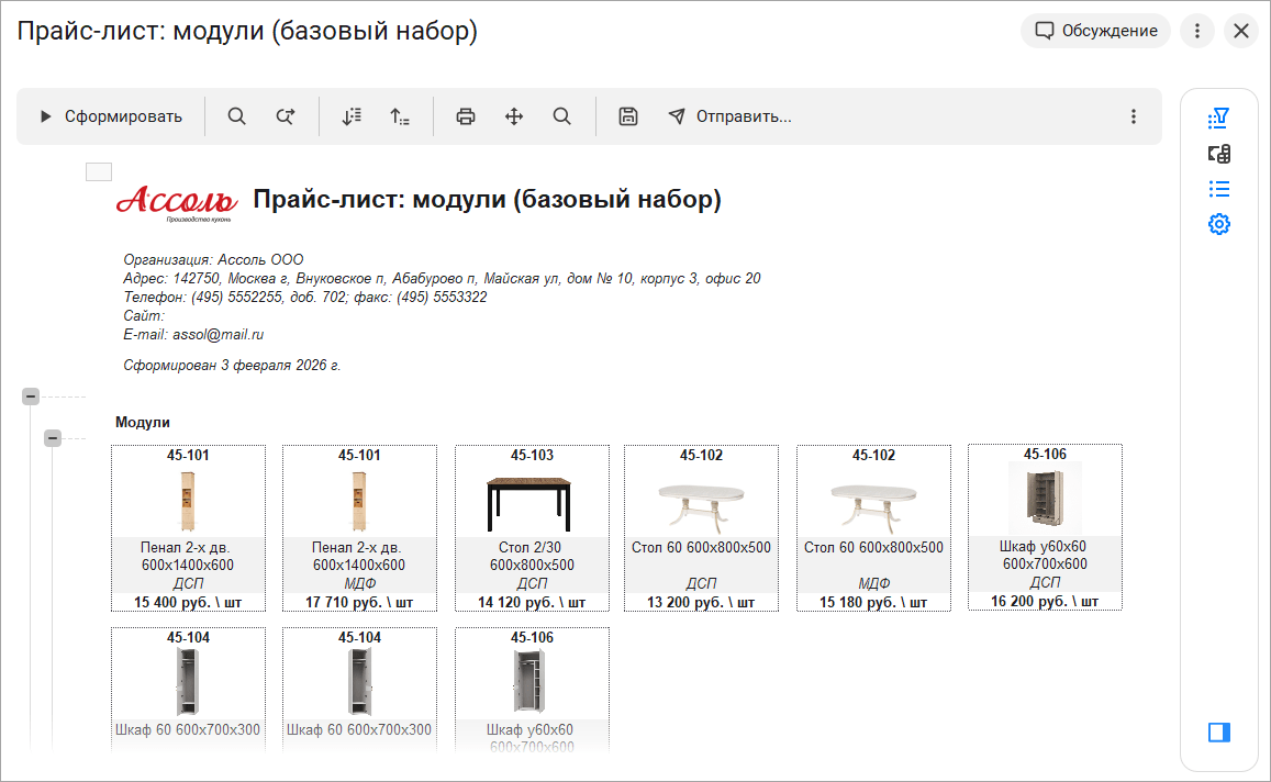 Прайс-лист в 1С:УНФ вида «Полотно»