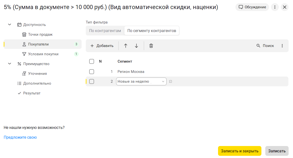 Правила применения скидок. Автоматические скидки можно установить для нескольких покупателей или списка клиентов.