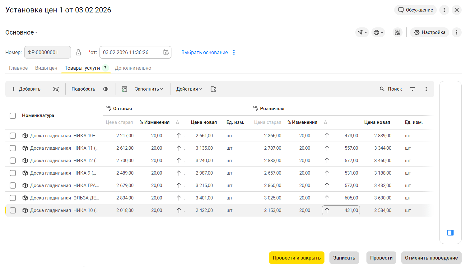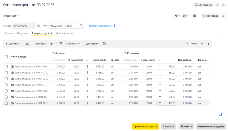 Изменить действующие цены можно увеличением на определенную сумму или процент, а также использовать округление.