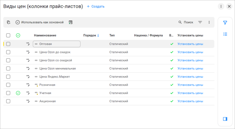 - Назначайте различные виды цен: закупочные, оптовые, розничные. Используйте минимальные цены, психологическое округление и формулы для расчета цен.