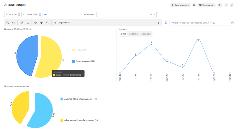 - оценить результаты в отчетах о продажах по каждому каналу продаж, товару, менеджеру.