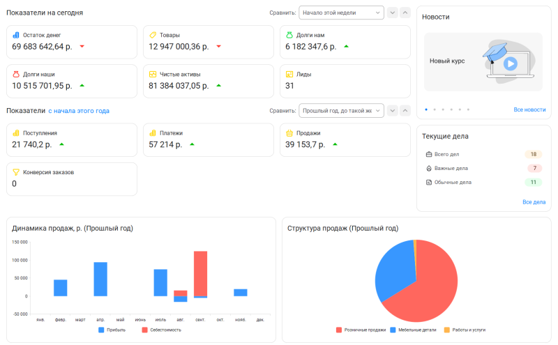 Программа помогает оценить доходы, расходы и прибыль/убытки бизнеса проанализировать продажи и валовую прибыль оценить эффективность менеджеров и клиентов, получить информацию, сколько прибыли бизнес зарабатывает с каждого рубля продаж.
