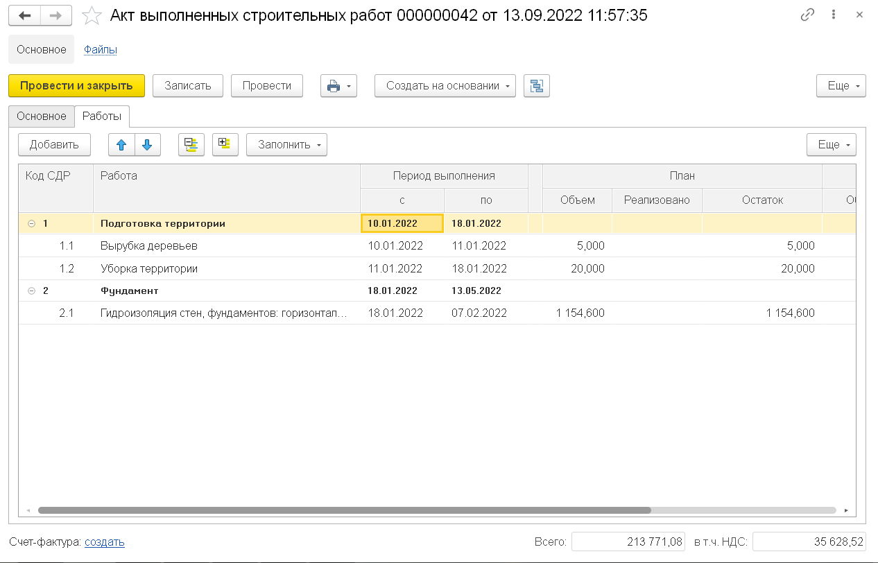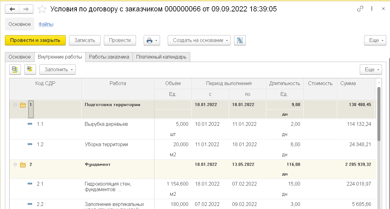 «1С:Управление нашей строительной фирмой» в сервисе 1C:ФРЕШ